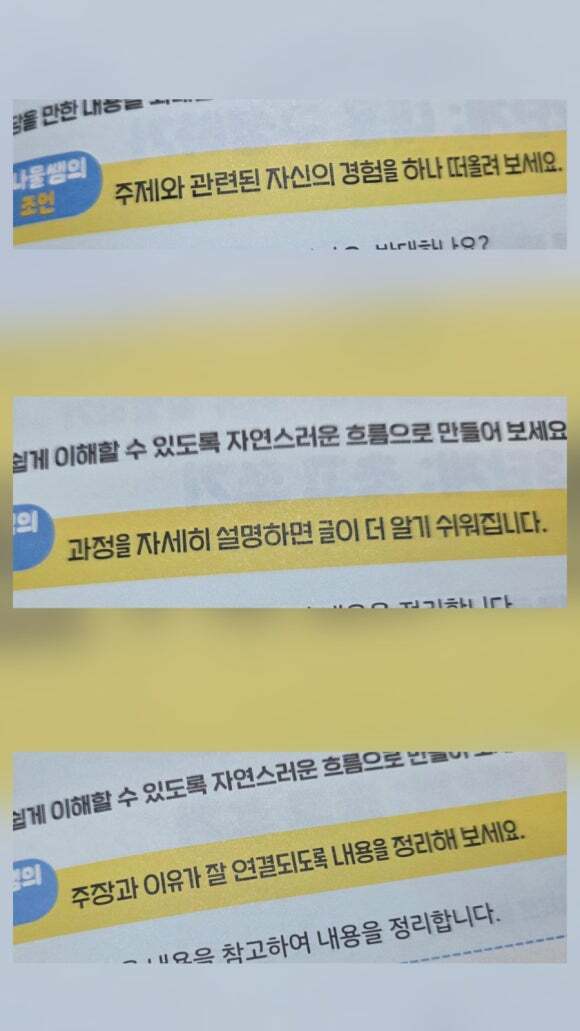 “가르쳐 주지도 않은 채 글감만 던져 주는 방식은 글을 잘 쓰게 하는 실제적인 방법이 아닙니다. 아이의 경험, 생각, 관찰이 자연스럽게 글로 연결되도록 돕는 구성이 글을 잘 쓰게 하는 방법입니다.”