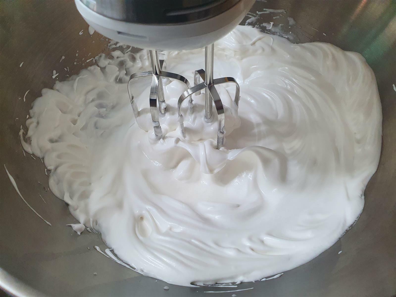 설탕이 덜 섞인 상태에서 머랭을 마무리하면 단단한 머랭이 만들어지지 않는다고 하네요.
