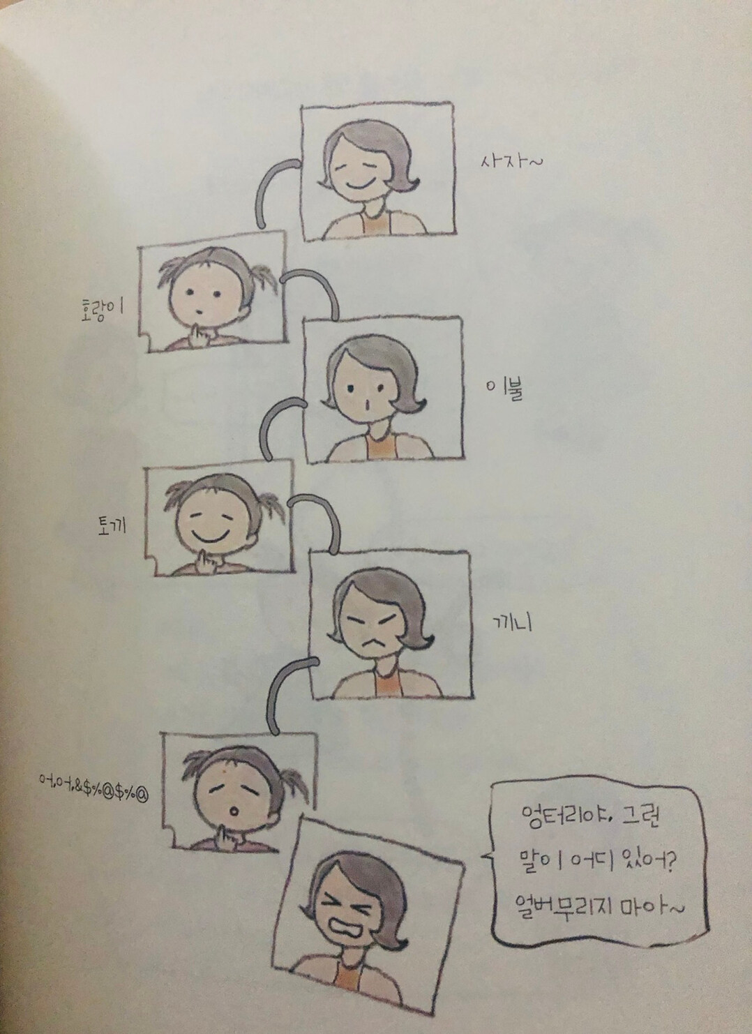 그런 말이 어디 있어 하면서 인내심의 한계에 이른 엄마.