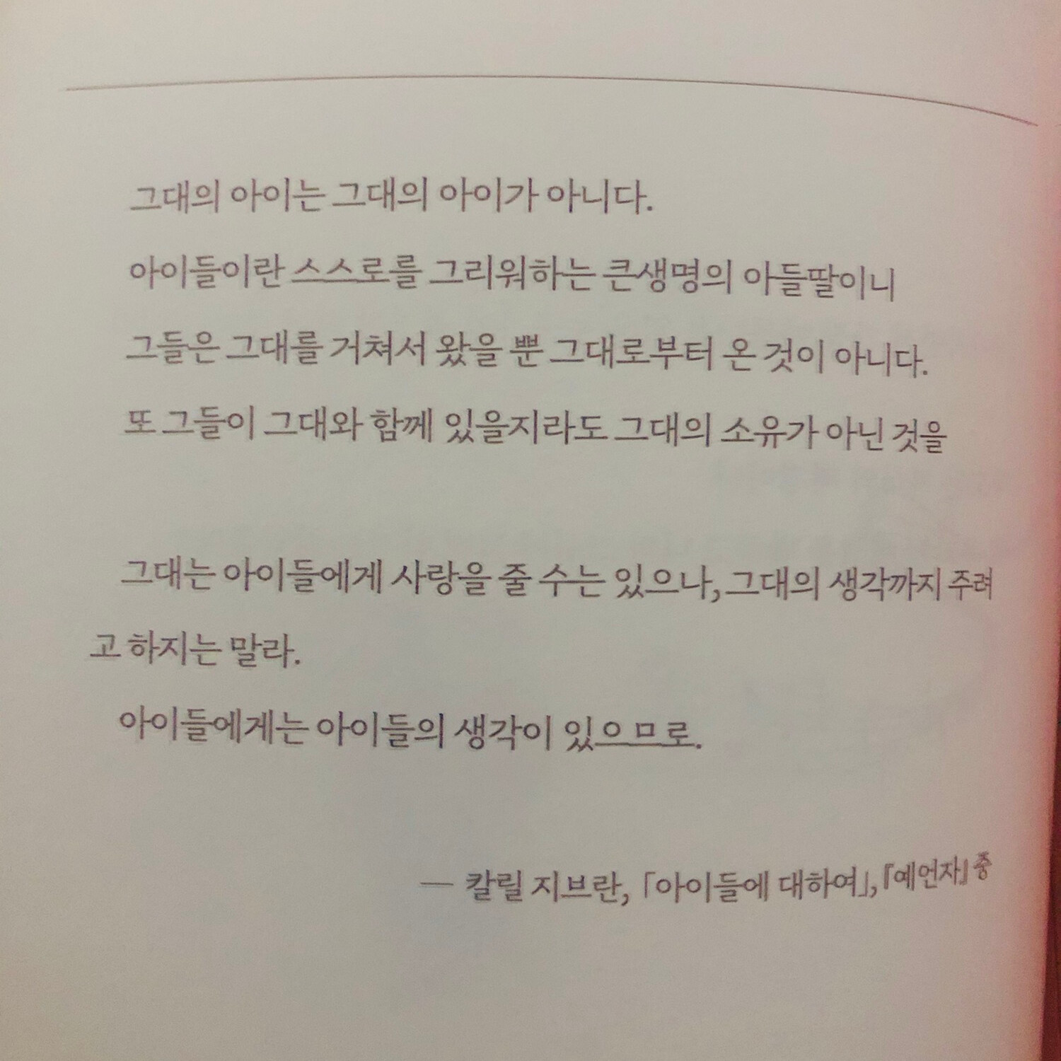 그대는 아이들에게 사랑을 줄 수는 있으나,