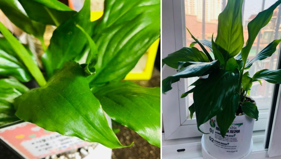 우리 막둥이가 식목일날 심어 온 스파티필름.