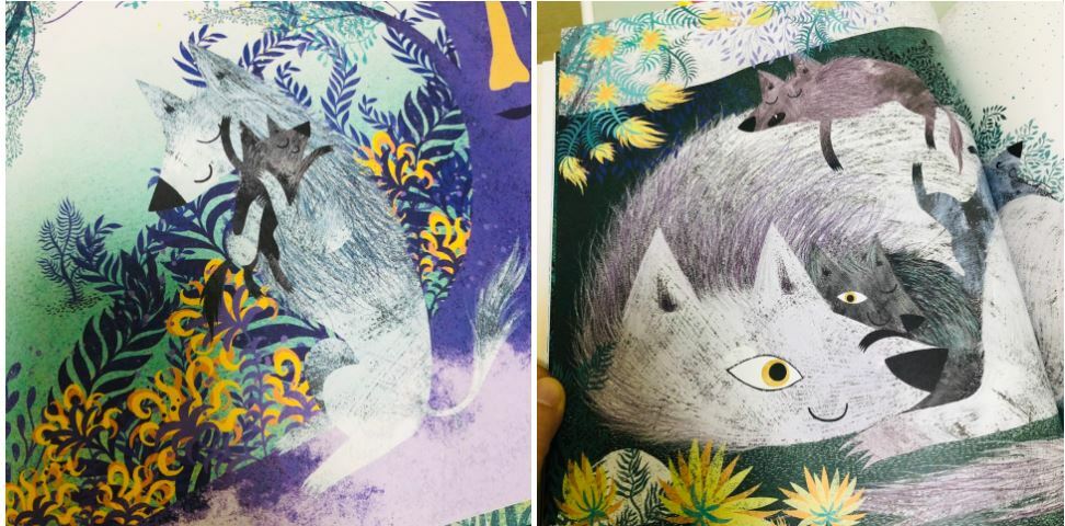 무서움을 느끼기보다는~ 초록색과 보라색으로 따스함을 늑대에게 선물한 거 같았어요.