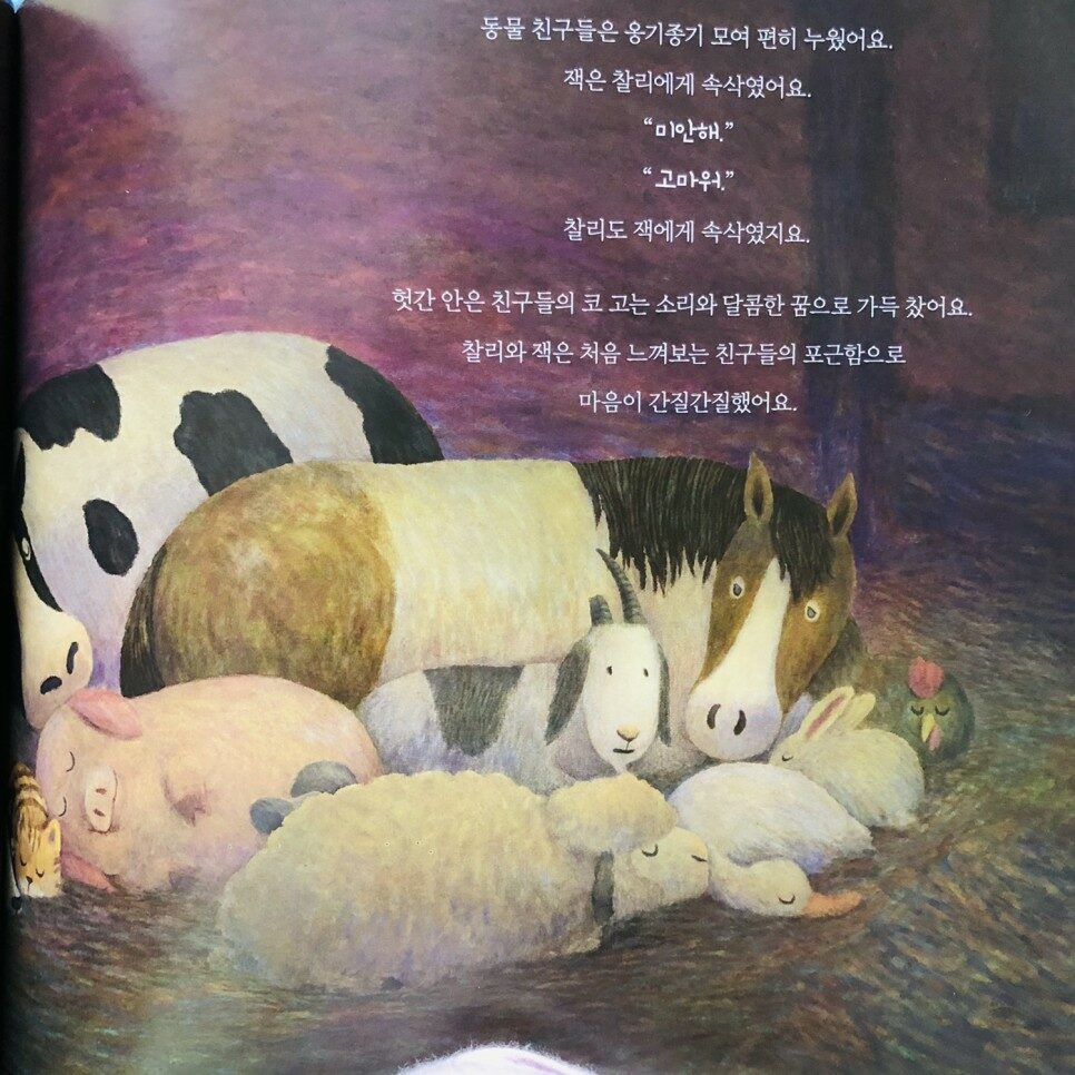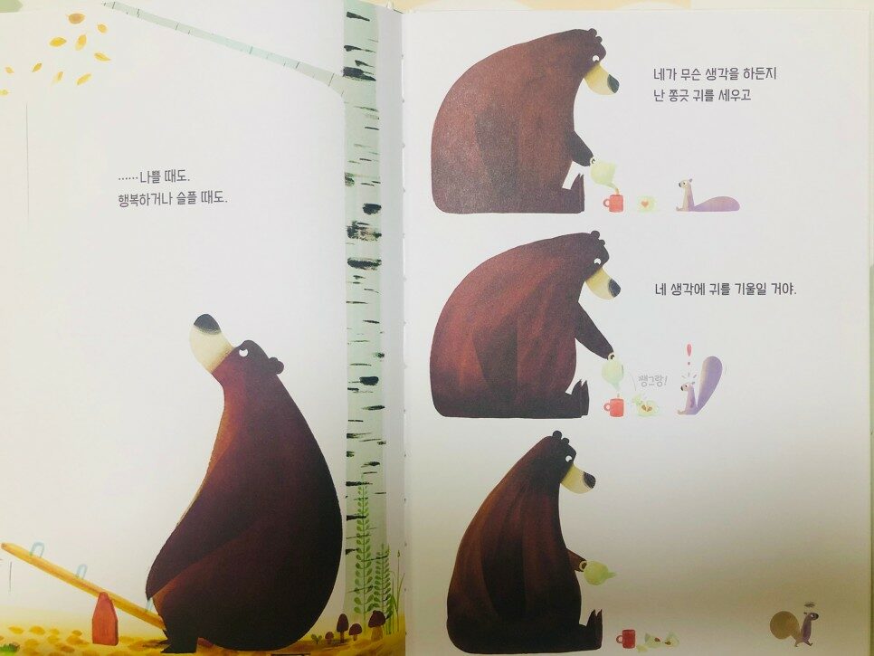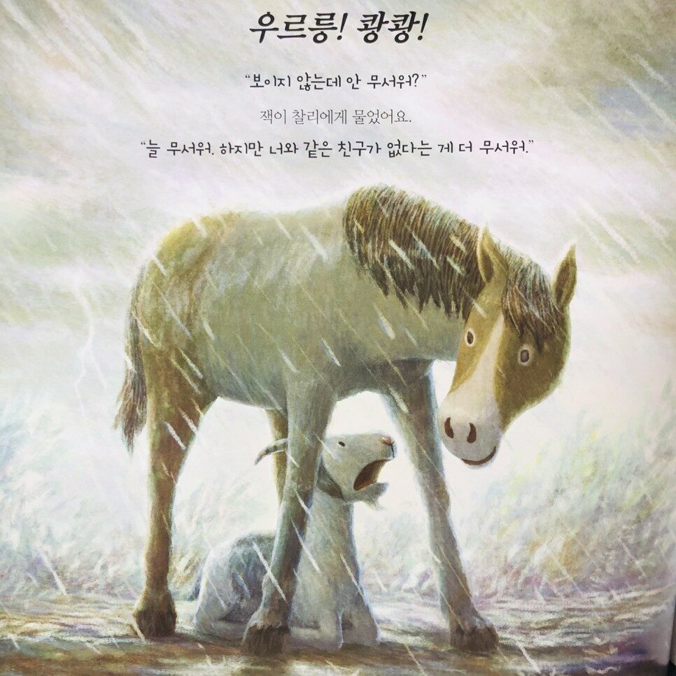 혼자는 무서워!! 그림 하나하나 색을 참 예쁘게 표현했어요.