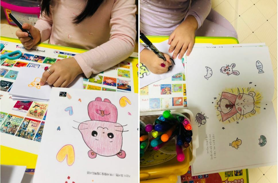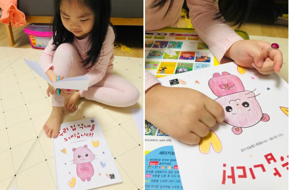 책접기를 합니다. 그리고선 책을 보며 열심히 그림을 그립니다..