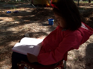 주말에 캠핑을 가서 주위 친구들과 놀다가 돌아와 책을 보는 모습을 보면서 우리딸도 엄마가 느낀 것을 그대로, 아니
