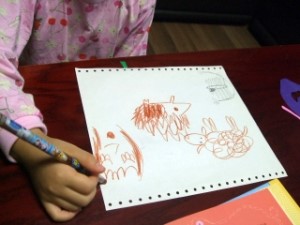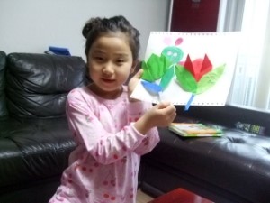 주말마다 물감을 풀어놓고 스케치북에 그림을 그리고 하고 싶은데로 하게 놔두었는데