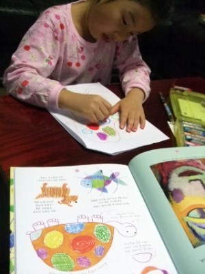 책에 있는 그림을 따라해보는 딸아이...제법 비슷한걸요~