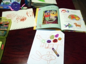 책 보고 따라그리는 것도 재밌나봐요...앉아서  한참 그리며 놀았답니다.