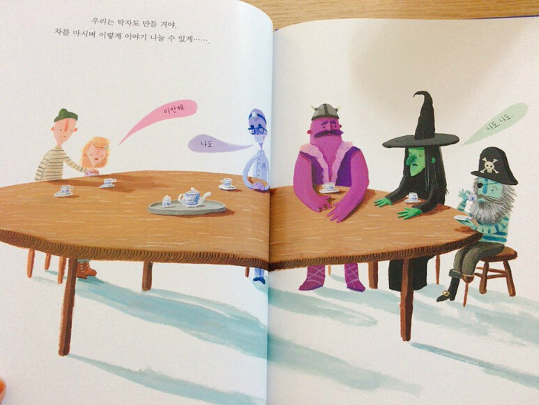 커다란 탁자를 만들어서 차를 마시며 대화를 나누면