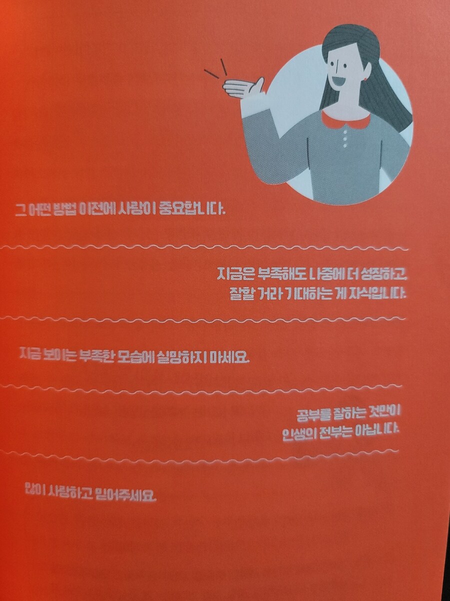'공부', '학습' 이라는 두 글자는 가족끼리 싸우기에 딱 좋은 주제입니다. 같은 말이라도 '아' 다르고 '어' 다르기 때문입니다. 서로 다른 관점의 차이를 이해해야만 갈등이 해결되는 것처럼, 같은 모습이라도 다르게 보려는 노력이 필요합니다. p22