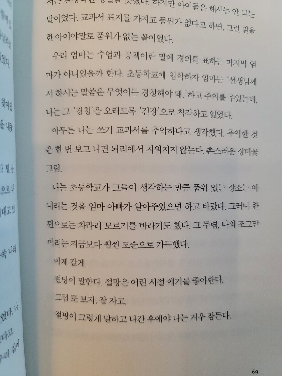 절망이 그렇게 말하고 나간 후에야 나는 겨우 잠든다. p69