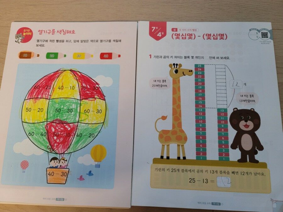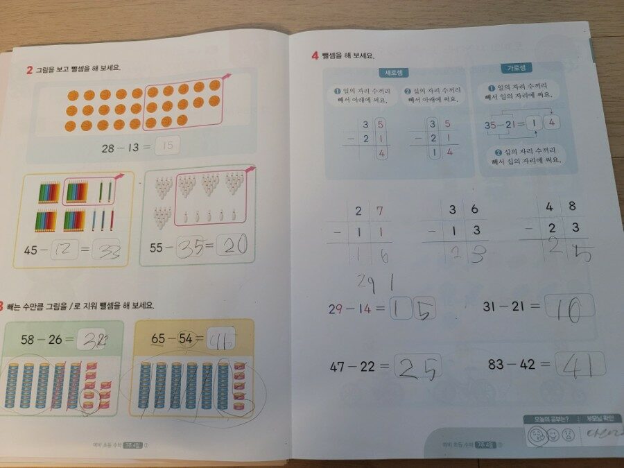 두 자리 수의 뺄셈이라 어렵지 않을까 싶었는데 차근차근 예비 초등 수학으로 학습하다보니 잘 해내서 뿌듯했답니다.