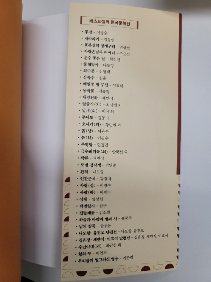 소담출판사 베스트셀러 한국문학선이 35권으로 이루어져 있는데 시간날때마다 찾아 읽어봐야겠다 :)