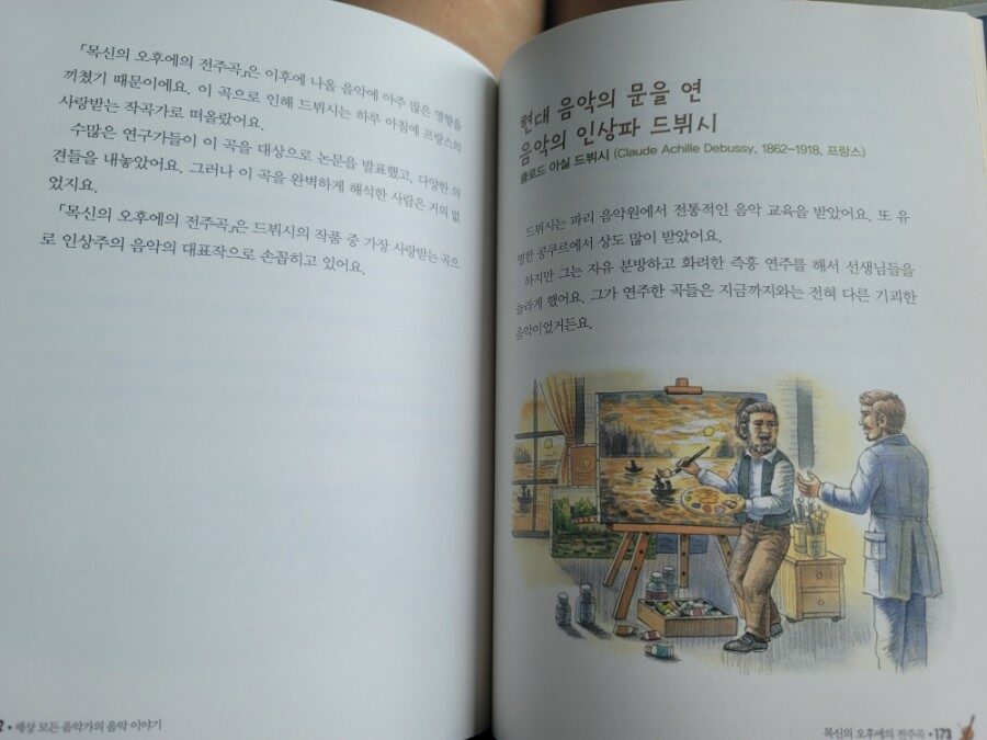 드뷔시의 스토리도 재미있더라구요. 인상파 화가는 익숙한데 인상파 음악도 있구나~ 다시금 알게 되었고 음악에 자신의 감정을 주관적으로 표현하는 형식을 최초로 도입한 음악가라니 너무나 놀랍더라구요. 정말 대단한 음악가들, 아니 천재들이 참 많구나~ 500년 전에 만들어진 고전 음악들이 지금까지도 감명 깊게 와닿고 음악이 주는 위로와 감동은 널리널리 전해지는 구나.