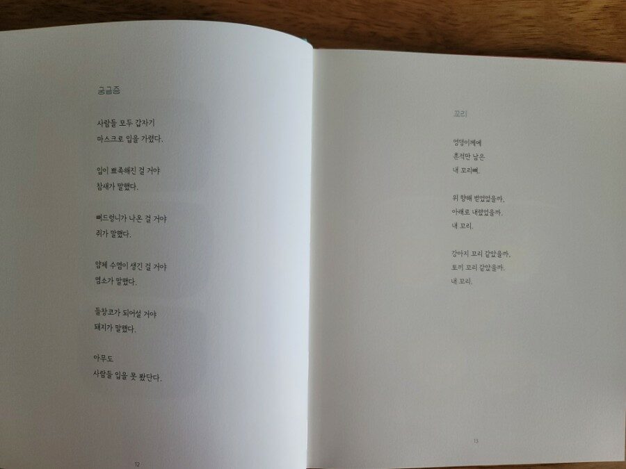 마스크가 일상이 되어버려 슬프지만 동물들은 각자의 생각대로 생각할 수 있겠다. 하면서 동시 한 편을 읽고 나면 이야기를 저절로 나누게 되더라구요 :) 동시가 낯선 아이들도 쉽게 읽어보기 쉬운 아이들 눈높이에 딱 맞는 재미있는 동시집이였어요!