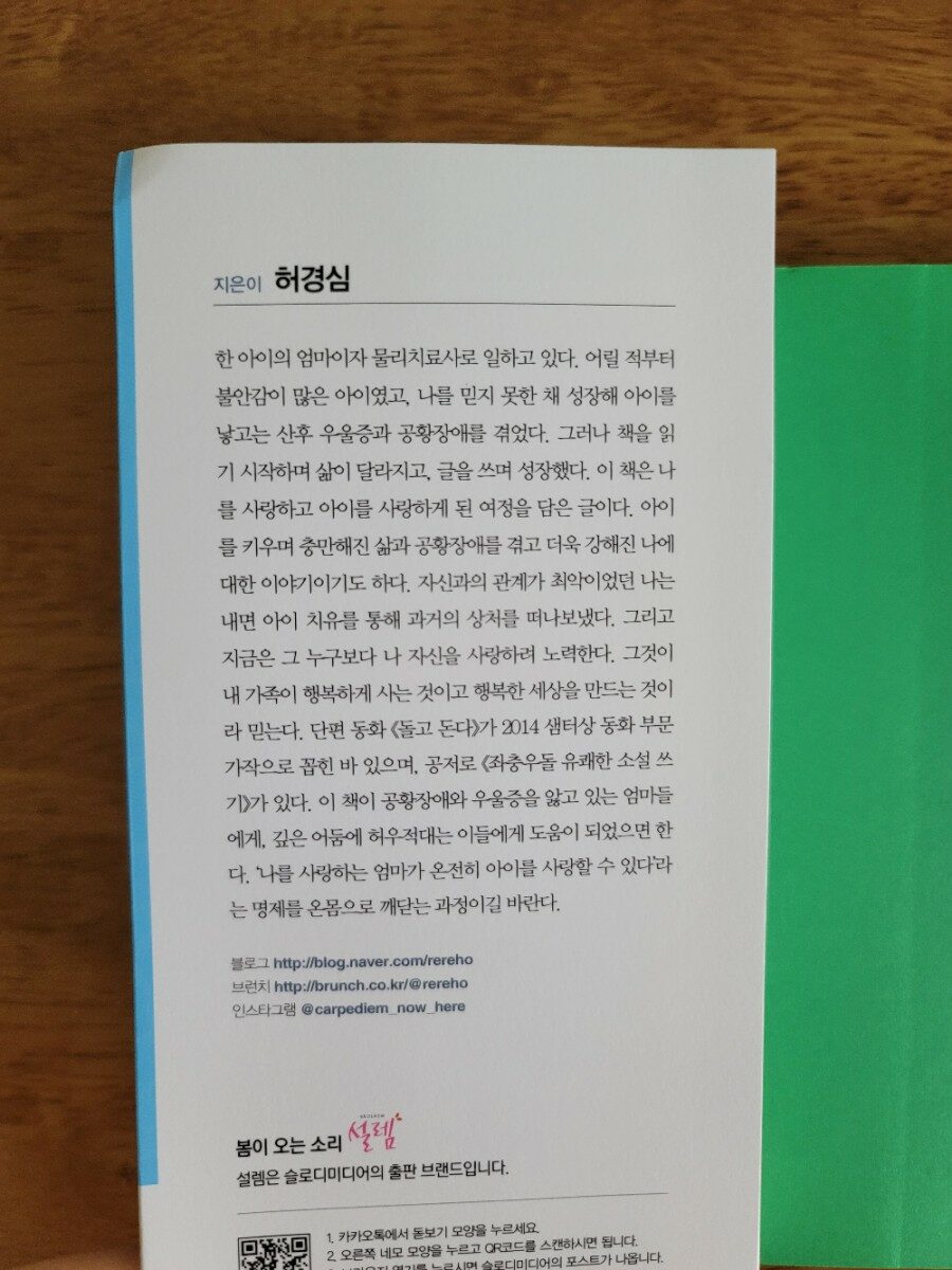 지은이 허경심은 어릴 적부터 불안감이 많은 아이였고, 나를 믿지 못한 채 성장해 아이를 낳고는 산후 우울증과 공황장애를 겪었다고 한다. 그러나 책을 읽기 시작하며 삶이 달라지고, 글을 쓰고 성장했다. 이 책은 나를 사랑하고 아이를 사랑하게 된 여정을 담은 글로 공황장애와 우울증을 앓고 있는 엄마들에게 깊은 어둠에 허우적대는 이들에게 도움이 되었으면 하는 마음으로 쓴 '어느 날, 나에게 공황장애가 찾아왔습니다' 이다.