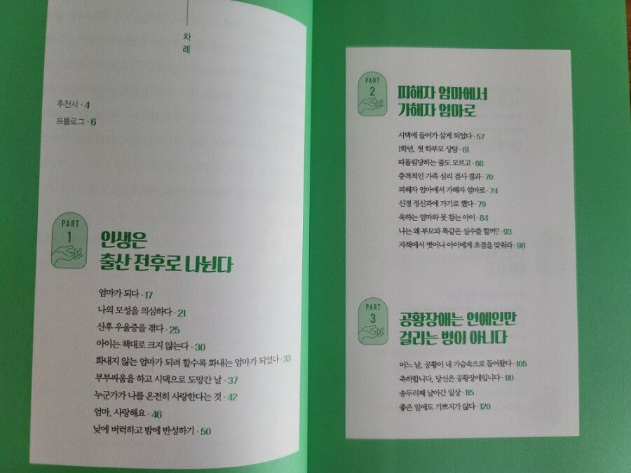 엄마라면 누구나 공감할 만한 구절이 많았다. 파트 1 제목부터 인생은 출산 전후로 나뉜다. 정말 무한 공감이 ~
