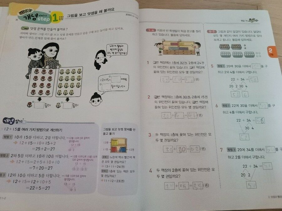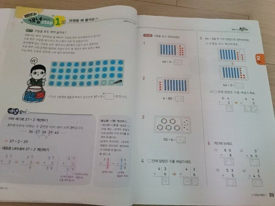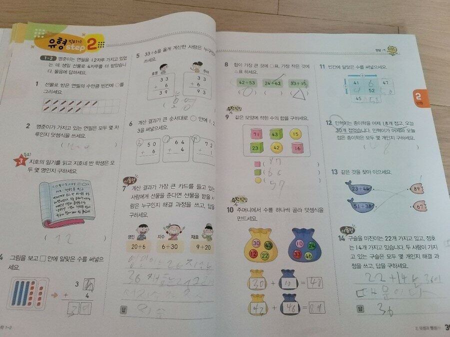 백점 수학으로 1학년 2학기 기초부터 탄탄하게 학습하고 있답니다!
