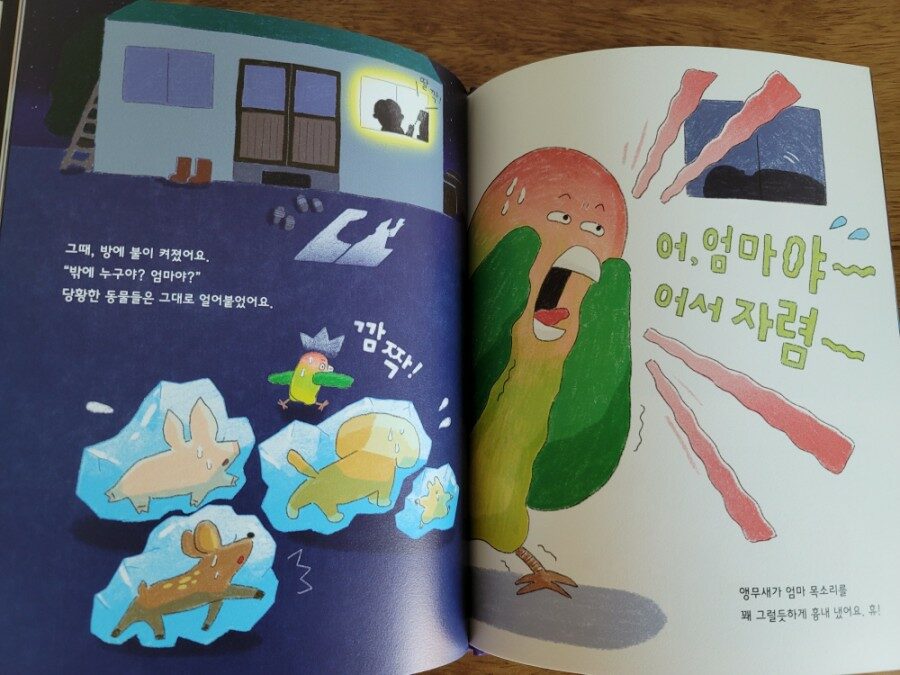 동물들이 황급히 이곳저곳에 몸을 숨기며 들키지 않으려 하죠. 너무 귀엽네요 :)