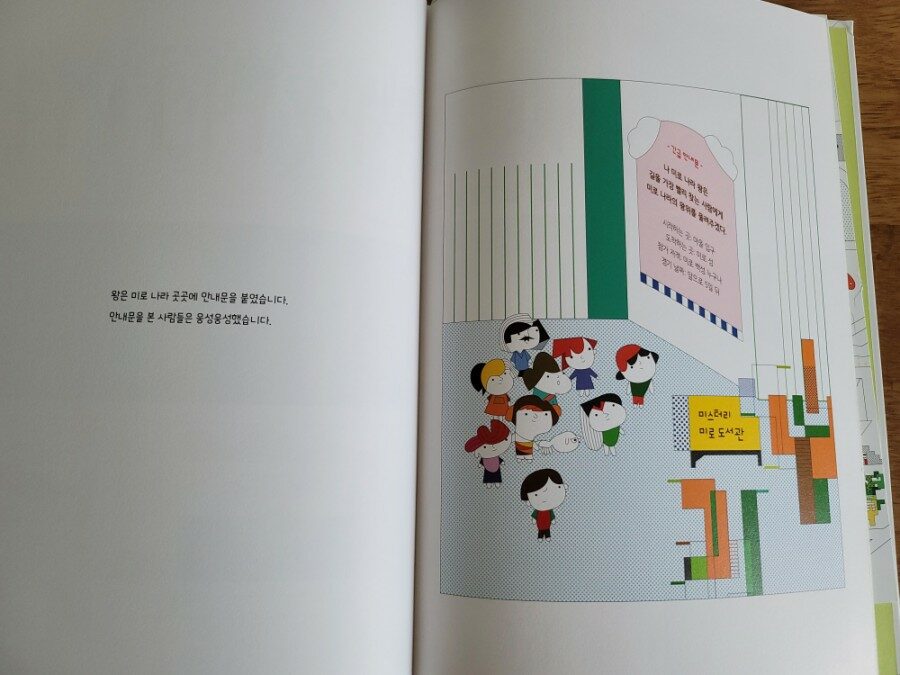 왕위는 가장 빨리 길을 찾는 백성에게 물려주겠다고 마음먹고 왕은 미로 나라 곳곳에 안내문을 붙였습니다.