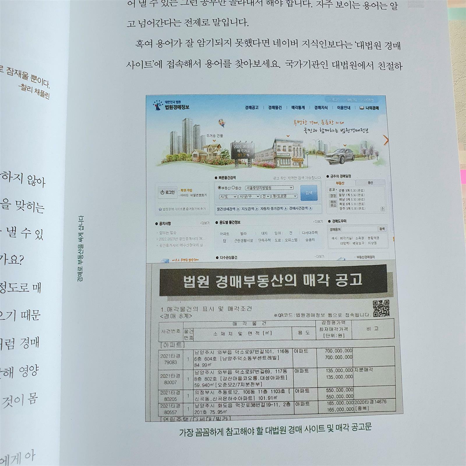 경매를 하기 위해서 도움이 될만한 사이트나 정보들을 책 곳곳에 체크해 두셔서 그것 또한 큰 도움이 되었다. 또한 올컬러로 기획한 책이니만큼 현장감이 쏙쏙 눈에 들어왔다.