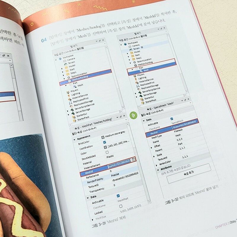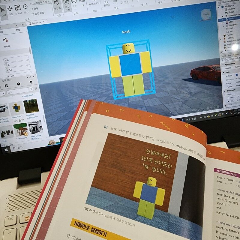 책을 보고 기초부터 차근차근 따라하기도 하고, 로블록스 스튜디오 여기저기를 눌러보기도 합니다.
