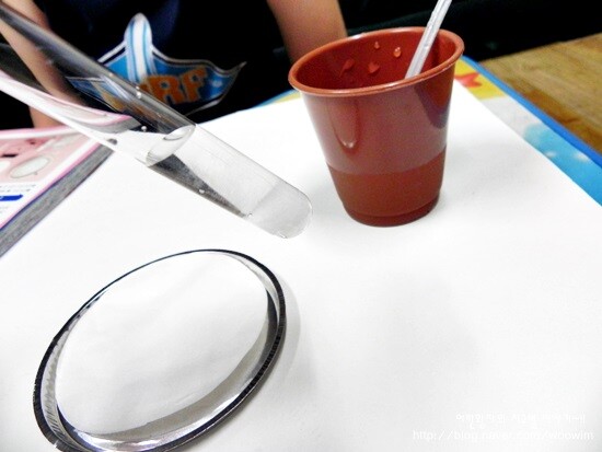 소금물의 농도가 진해야 글씨가 잘 써진다고 해서 저희도 소금물의 농도를 조금 진하게 했어요.