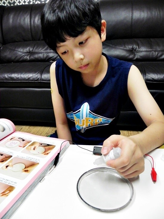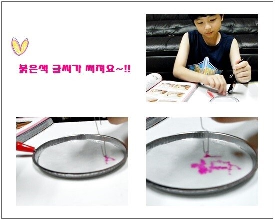 전해질의 원리를 이용해서 소금으로 글씨를 쓰는 실험은 처음이라는 아이에요.