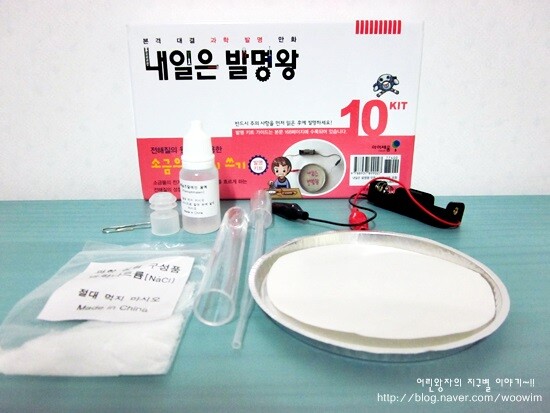이번 발명키트는 전해질의 원리를 이용한 <소금으로 글씨 쓰기>에요.