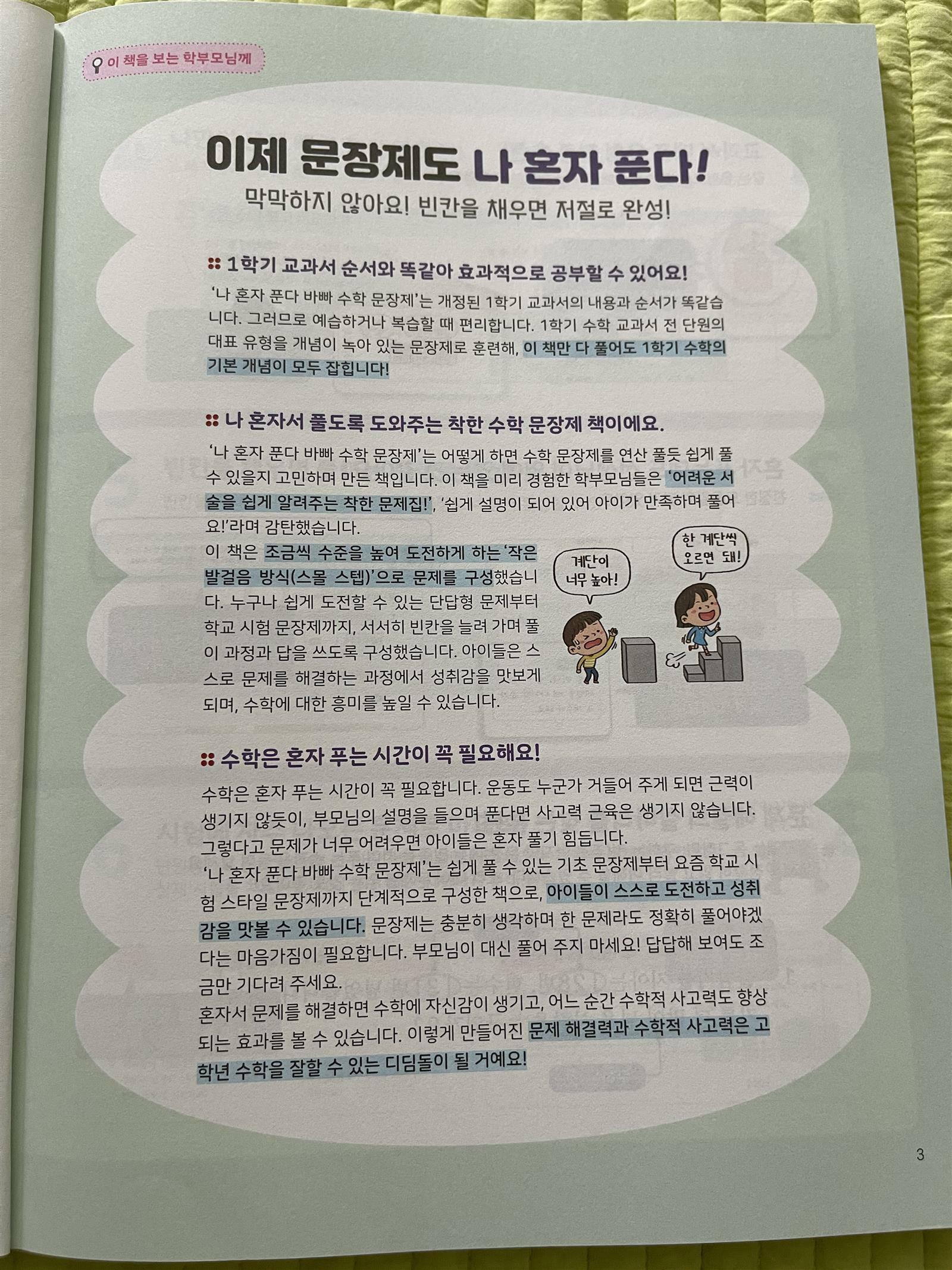 그냥 암기하고, 기계식으로 푸는 것이 아닌. 문장제 수학 문제집이 왜 필요한지!