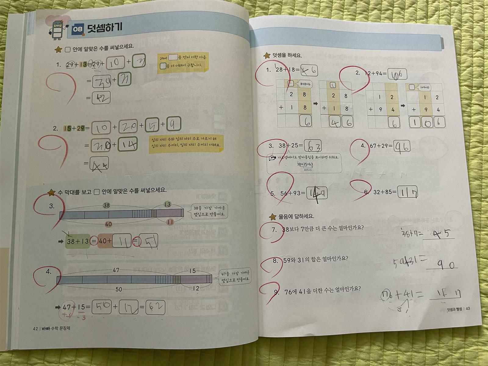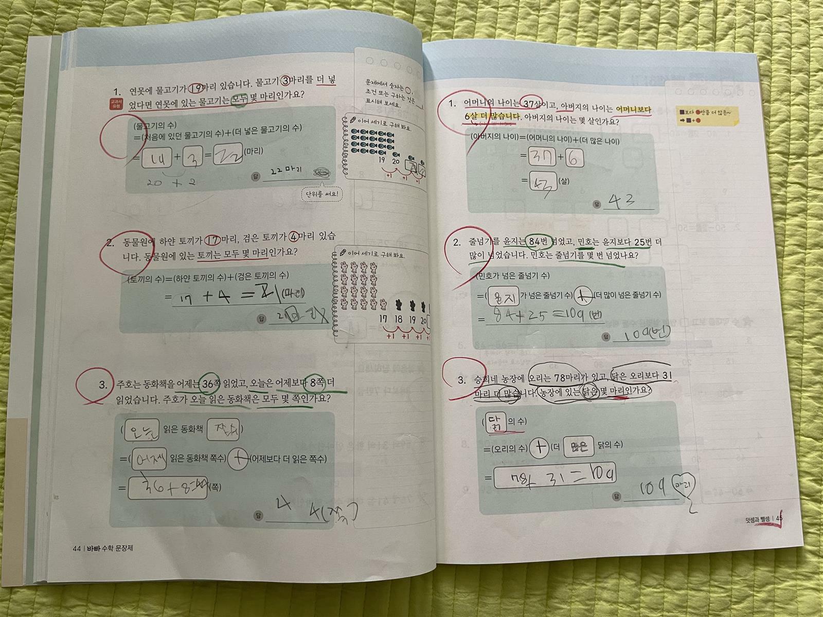 2학년 아이와 지금 배우고 있는 문장제도 풀어보고, 배웠던 내용들 단원평가도 풀어 보았어요.^^
