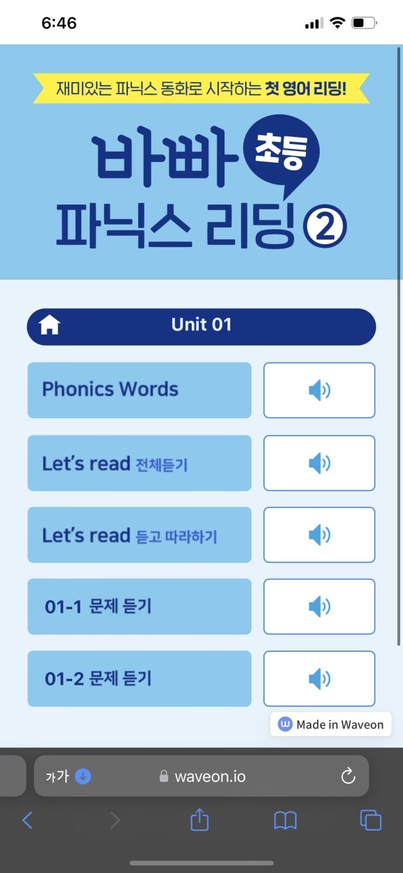 본문에 들어가기 전에 먼저 파닉스 단어를 듣고 읽어보고 익힐수 있어요.