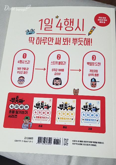 4자성어로 일기를 쓰는 것도 뿌듯하지만 부담스럽지 않게 시작할 수 있는 <뿌듯해 3행시 초등 일기쓰기>도 좋아 보입니다.