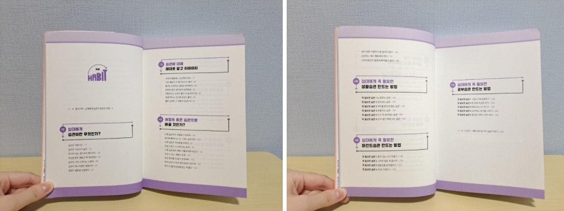 게으른 십대를 위한 작은 습관의 힘의 목차에요.