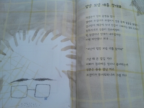 낙서한 듯 아이가 그린 듯한 그림이 시와 잘 어우러진다