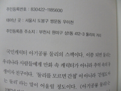 둘리는 대한민국 주민등록까지 가진 대한민국 국민이다. 국민 캐릭터 둘리는 캐릭터 상품만도 2000 여 종에 이른다고 한다.