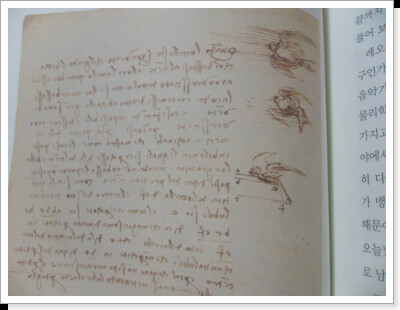천재임을 노트 속에도 남긴 거울을 통해서 보아야 읽을 수 있는 왼손 기록.