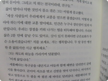 내가 이 사건을 매스컴을 통해서 접하게 되고, 구조 과정이 세계의 주목을 받게 되었을 때에 느낌과 이 책을 읽으면서의 느낌은 많은 차이가 있었다.