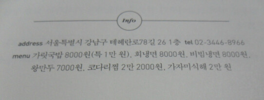 소개되는 맛집에는 주소, 메뉴, 가격까지 친절하게 소개해 주니, 책을 읽고 그 식당을 가보고 싶다면 수월하게 찾을 수 있을 듯하다.