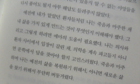 그렇게 함으로써 삶의 의미와 대면하려 했다. 우리는 사람의 생사가 걸린 일을 책임져야 하는 힘겨운 멍에를 졌다. 우리 환자의 삶과 정체성은 우리