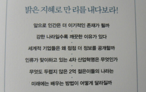 <명견만리>를 읽으면서 TV를 통해서 접한 내용들도 다수 있음을 알 수 있었다. TV를 통해서 접한 내용은 순간적으로 지나가 버리지만, 이렇게 책으로 묶어서 출간되니, 방송당시에 화면들이 겹쳐지면서 좀더 내용을 자세하게 살펴볼 수 있었다.