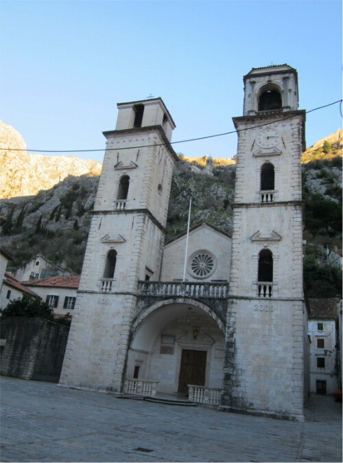 <성 트리푼 성당> 코토르에서 가장 오래된 건축물로 809년에 건립하였으나 지진으로 인하여 2009년에 다시 지었다.  그래서 성당 왼쪽에는 최초의 건립연대인 809가, 오른쪽에는 2009가 새겨져 있다.