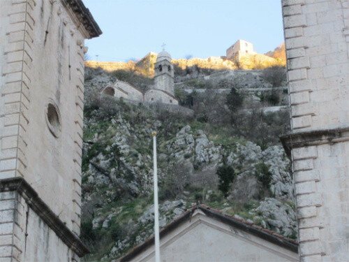 그래서 코토르 여행의 하이라이트는  광장 뒷편에 있는 130개가 넘는 계단을 따라 성 요한 요새까지 올라가서 아드리아해의 피요르드와 성 안의 도시풍경인 붉은 지붕의 집들을 내려다 보는 것이다.
