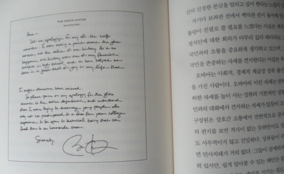 사소한 일인건 같지만 오바마의 친필 편지를 통해서 국민과의 소통을 중요시 여기는 자세와 소통의 방식에 있어서 국민을 존중하는 자세를 느낄