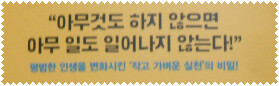 수없이 쏟아져 나오는 자기계발서, 수십 권의 자기계발서를 읽어도 변화하기 않는다면, 그 책의 내용을 행동으로 옮기지 않는다면 무슨 소용이