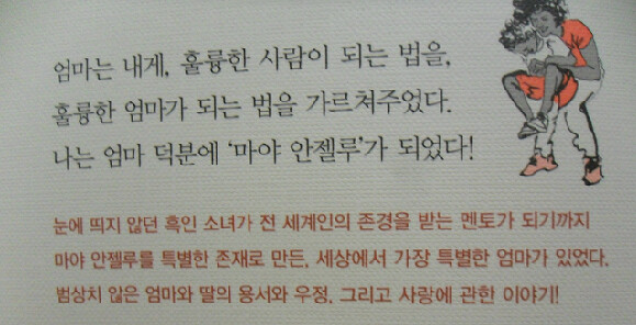 이 책에는 '마야 안젤루'가 어린 시절 할머니집에 살 때부터 그녀의 엄마가 세상을  떠날 때까지의 마야와 엄마에 대한 기록이 고스란히 담겨 있다.