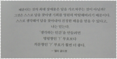 저자가 특히 주장하는 바는 '생각을 가두지 마라'는 것인데, 어떤 질문에든 답은 하나가 아님을 직시해야 한다.