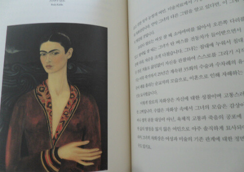 올해 여름에 우리나라에서 전시회를 가졌던 프라다 칼로, 그녀의 인생은 사고로 인하여 큰 고통을 느끼면서 살았지만 그 고통은 그림 속에서 강하고 사실적인 색채로 표현되면서 아픔, 고통, 외로움을 극복하려는 강한 의지를 나타낸다.