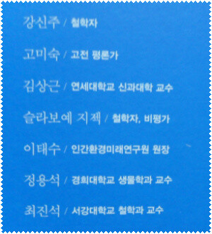 이 책의 저자 중의 유일한 외국인인 슬로베니아 류블라랴나 출신의 슬라보예 지젝은 사회학자, 철학자, 정신분석학자인데, 외국인인 그가 본 한국, 한국인에 대해서 생각을 하게 해 준다.