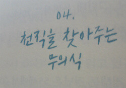 이 책을 읽으면서 확연하게 그 무엇인가가 다가오지 않는데 그 이유는 아무래도 의식이 아닌 무의식에 관한 내용이기에 그 답을 찾기가 힘들지 않은가 하는 생각을 해 보게 된다.